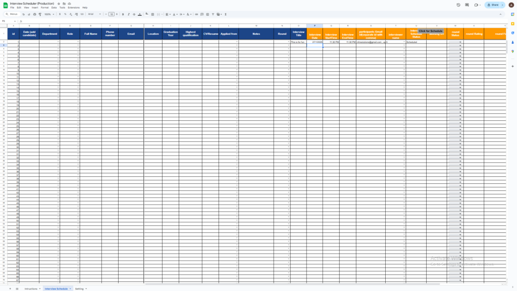 "Stop wasting time on scheduling interviews—use Google Sheets to effortlessly manage and schedule interviews, all synced with Google Calendar and Google Meet!"